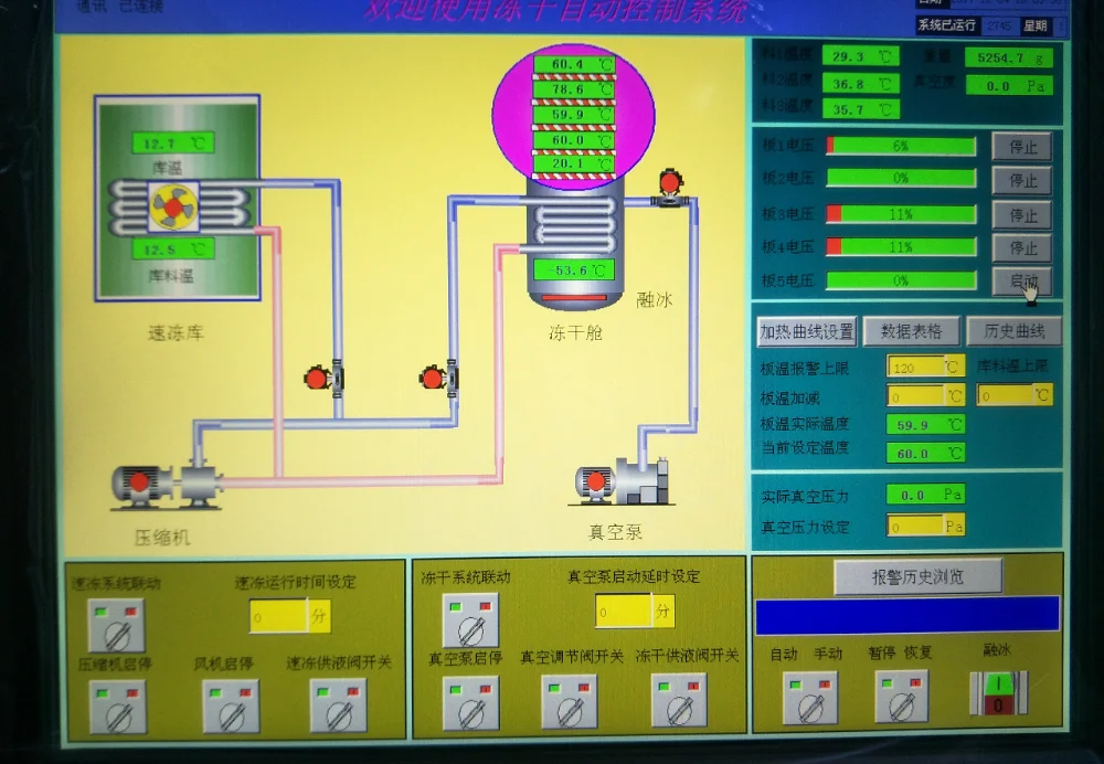 The Refrigerating System of vacuum freeze dryer adopts the weni-closed compressor imported from USA. The key components such as the medium refrigerator, solenoid valve, expansion valve and oil distributor are also purchased from world-famous companies. Therefore, an ideal refrigerating temperature can be ensured and the reliability product in china.