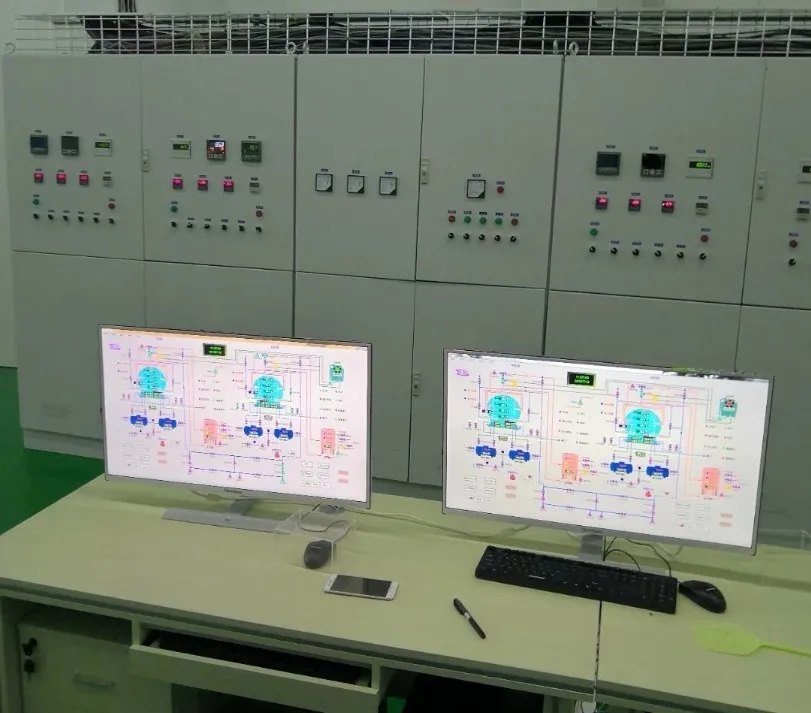 Heat supply system-made up of water heating tank,plate exchanger,pneumatic control valves,pumps and pipes, liquid-level indicator, temperature sensors and assembly heating plates,is a forced circulation under the auto-control pressure of gas nitrogen.