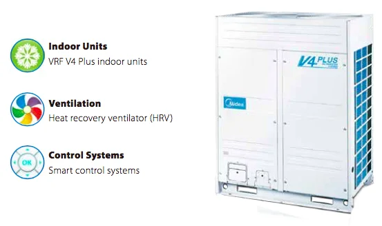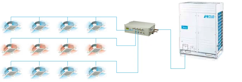 The all DC inverter V4 Plus heat recovery seriesair conditioning, which can offers simultaneous cooling and heating operation in one system.