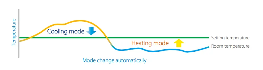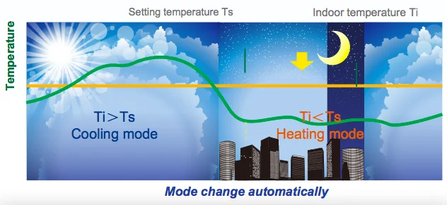 Under the Auto Mode, the indoor unit can change the operation mode automatically, to keep the indoor temperature at a constant level.