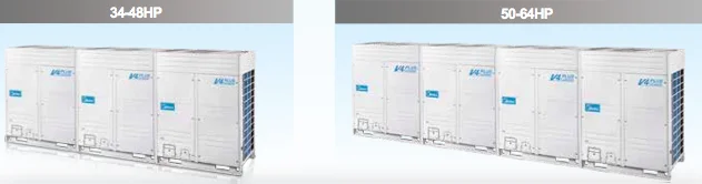 The outdoor units capacity range from 8HP up to 64HP in 2HP increment. Maximum 64 indoor units (with capacity up to 130% of total outdoor units) can be connected as one refrigeration system.