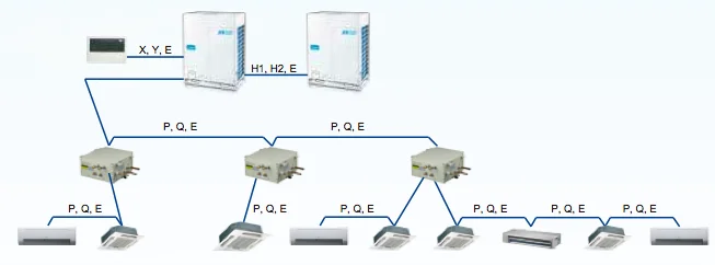 Centralized controller (CCM03) can connect from indoor side or outdoor side (XYE terminals) at will. Only one group of communication wire of PQE, achieved both of communication for indoor & outdoor unit and network. It's more convenient for communication wiring.