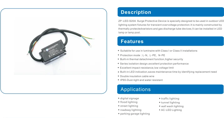 | Product Name: | 10kA/20kV High Energy LED Power SPD Surge Protect; | Power: | AC; |
