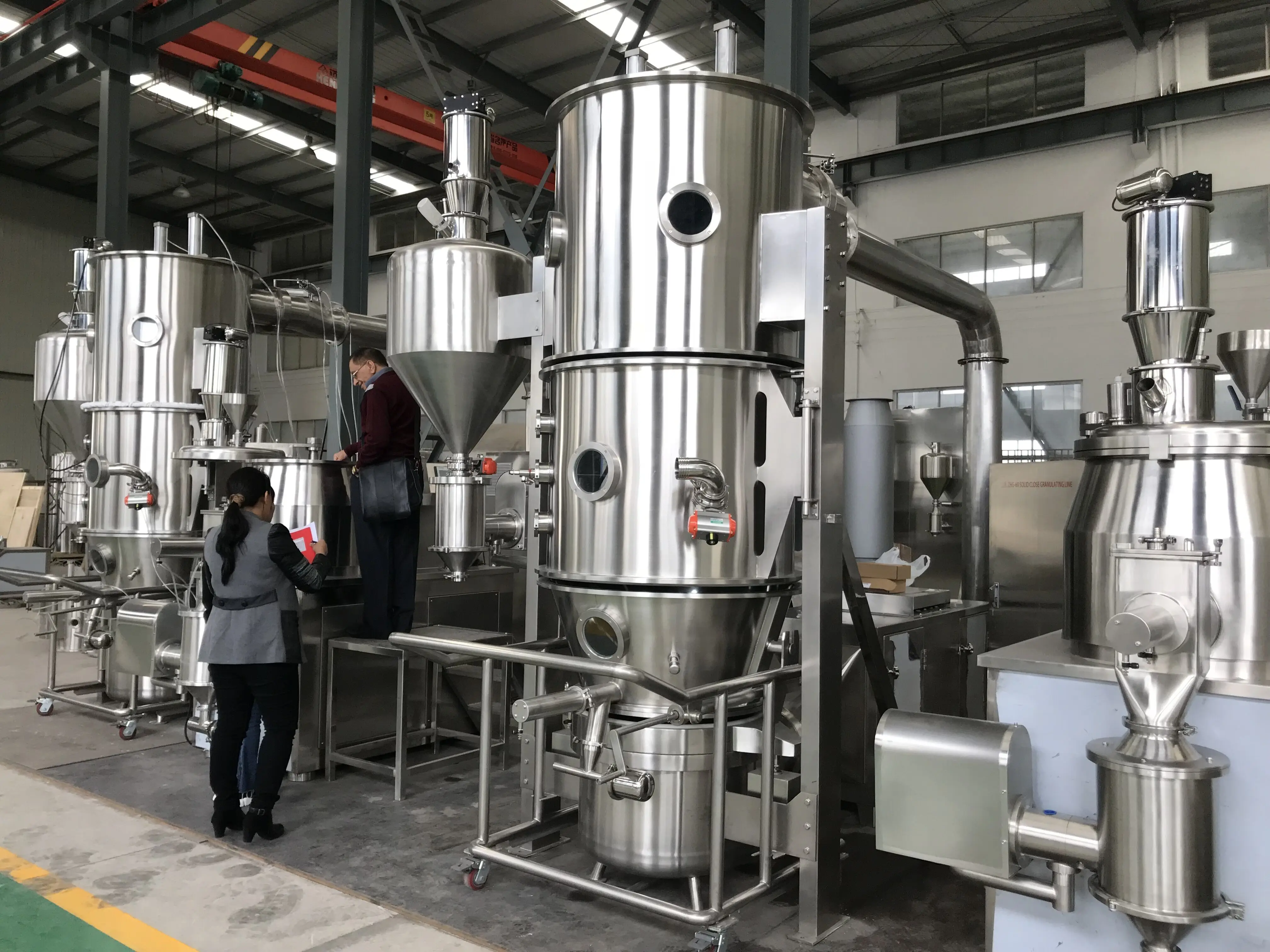The powder granule in fluid bed appears in the state of fluidization. It is preheated and mixed with clean and heated air. At the same time the solution of adhesive is sprayed into the container. It makes the particles become granulating that contains adhesive. Being of unceasing dry through hot air, the moisture in the granulating is evaporated. The process is carried out continuously. Finally it forms ideal, uniform and porous granules.