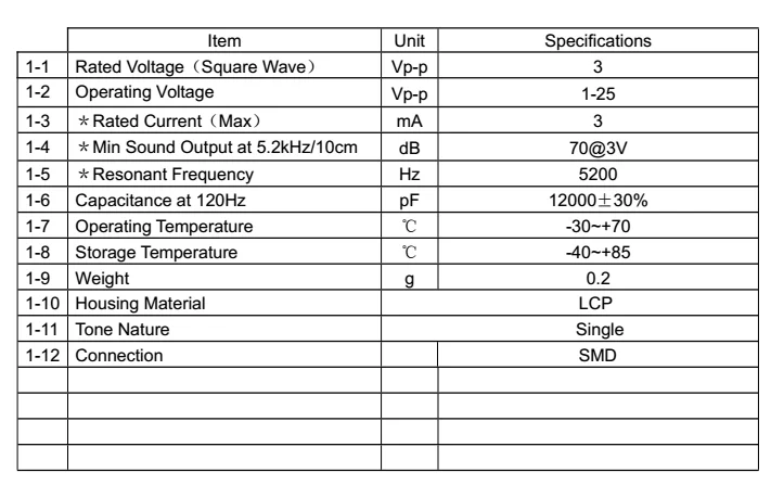 | Type: | Buzzer; | Housing Material: | LCP; |