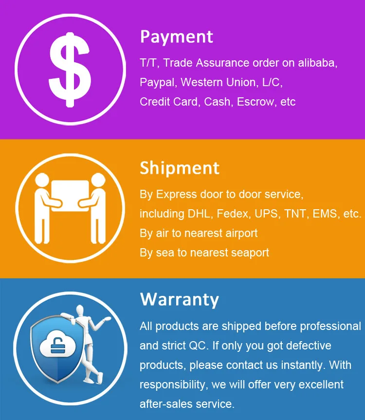 | Shipment | By Express, by air, by sea |
