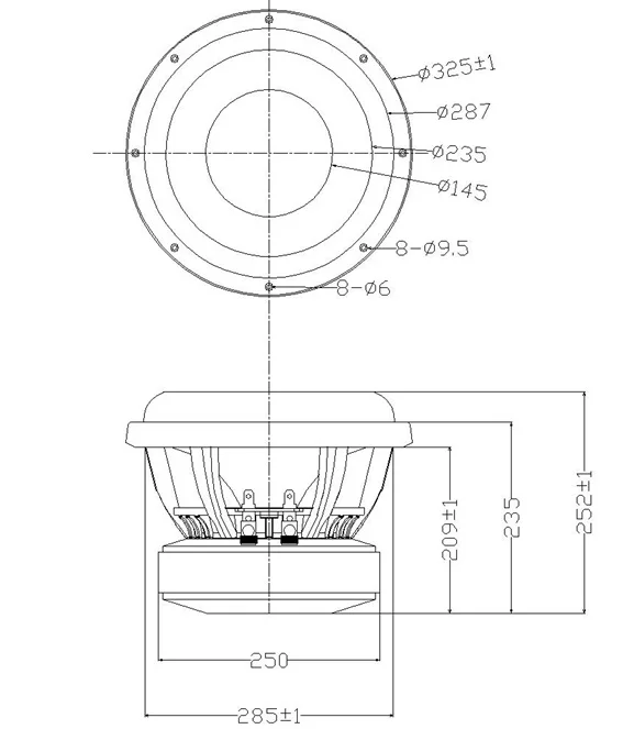 Drawing of the 12 inch subwoofer speaker :