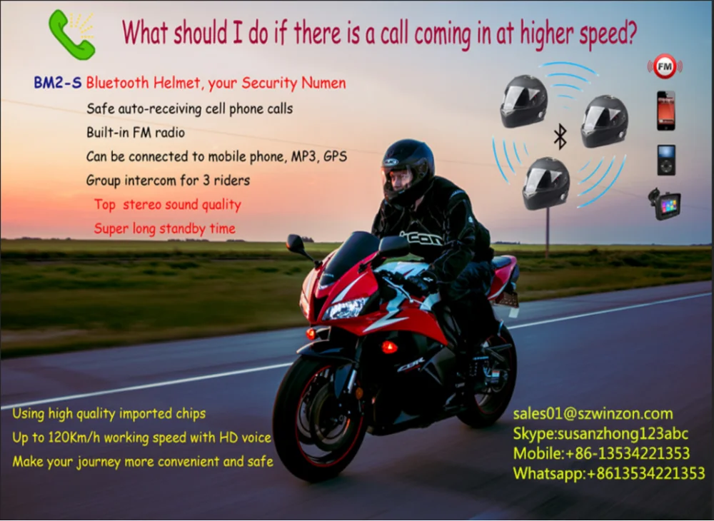 BM2-S Motorcycle Bluetooth helmet is a perfect helmet that offers you a complete system for all your communication needs while riding your motorcycle. With built-in ear speakers and noise canceling microphone, it allows bikers to receive GPS voice instructions, to conduct calls on their mobile phone and listen to the music on MP3 player. Last but not least, the helmet offers biker to passenger or biker to biker intercom communication so that you can always be in touch while riding.