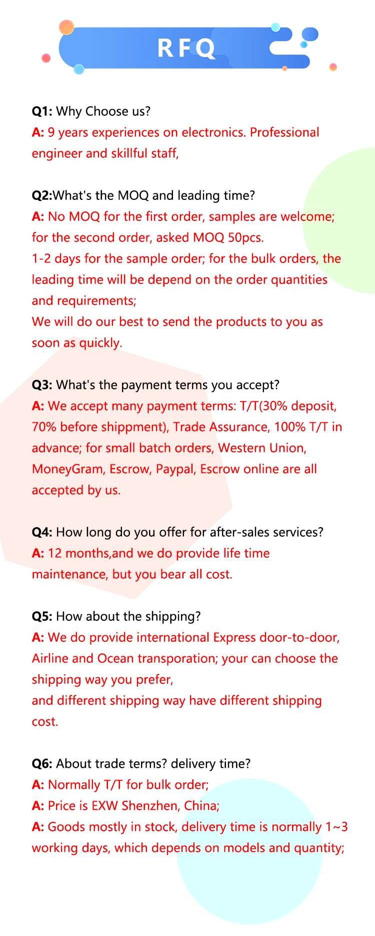 | Place of Origin: | Guangdong China; | Warranty: | 12 Months; |