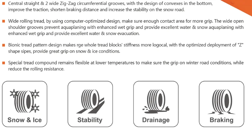 The key to good traction is friction, but this can be elusive depending on the weather. Winter tires are designed to stay soft and pliable at low temperatures, so they will deform and re-conform to all the micro irregularities of the icy surface.while microgrooves help provide biting edges that lock together, enabling better grip when turning on wet roads.