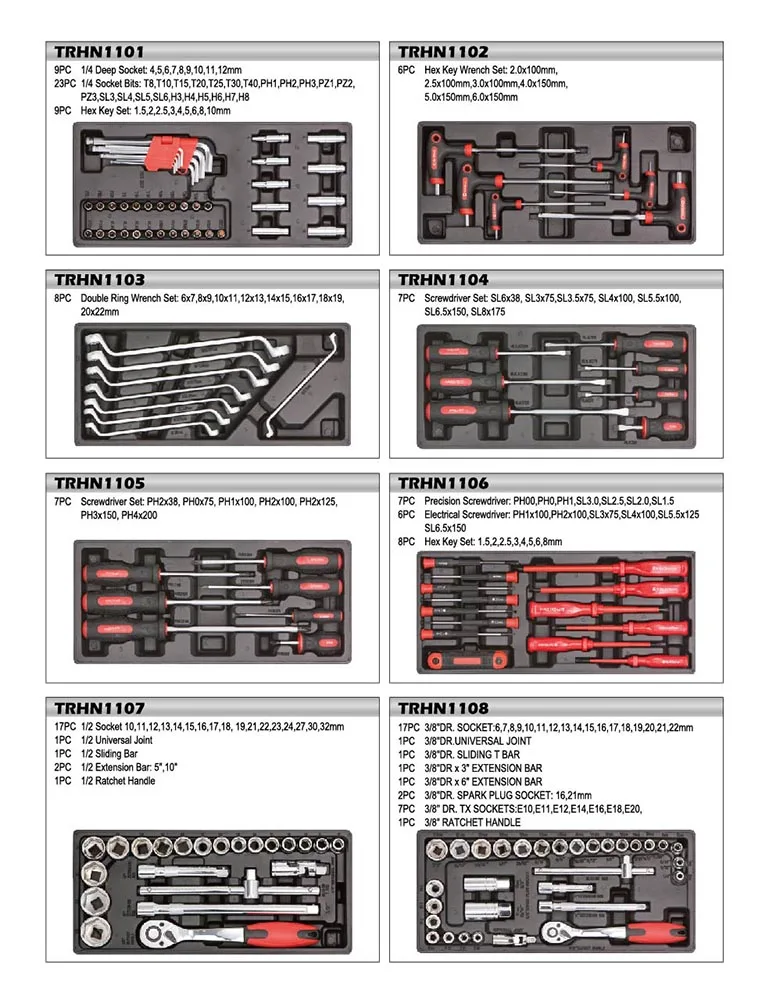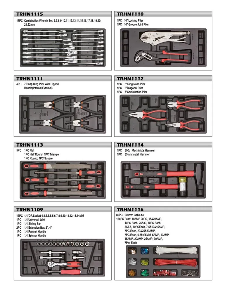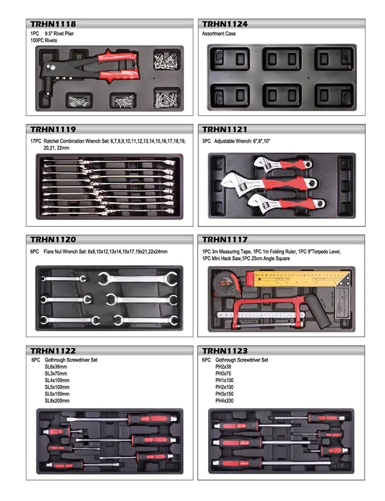 The tool chests or cabinets are a great way to store and organize your tools for your shop or garage. They are manufactured using the highest grade of raw materials available. These steel tool storage systems are secured with a high-security tubular locking mechanism. Drawers are equipped with ball-bearing slides, removable EVA slip-proof liners and full-length aluminum drawer pulls for smooth operation. |
