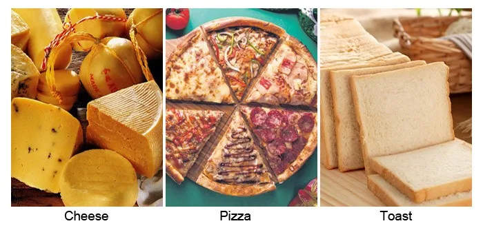 - It is suitable for the food products which include different hardness foods such as Cheese, Cake and bread , Pizza ,candy , nuts and dried fruits