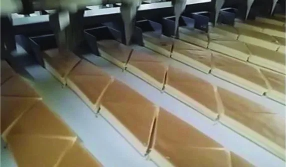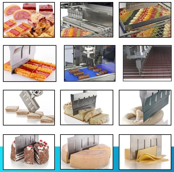 - Ultrasonic cutting machine to automatically cut slab cakes,biscuit rolls,slab cakes in trays,cheese,dough,fruit bars,round cakes and similar products.