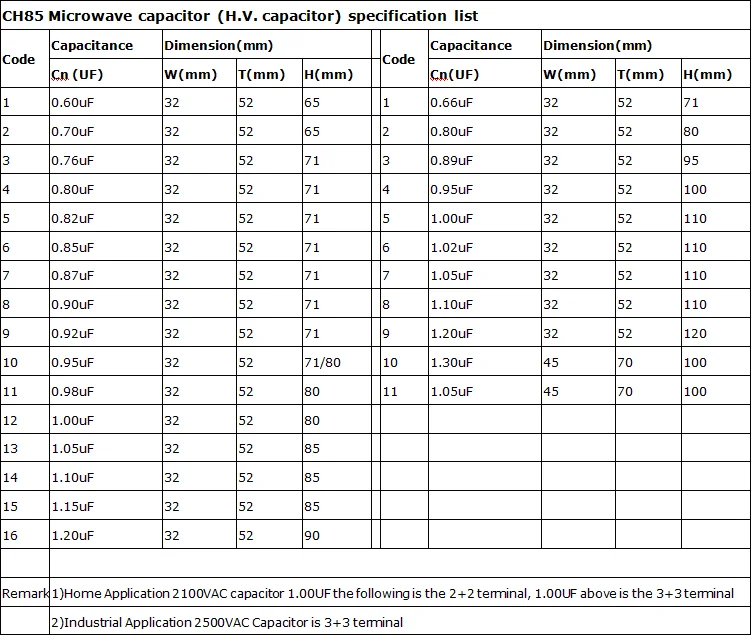 A: Yes, all microwave oven capacitor with 2500vac 0.5uf are assembled in stock.