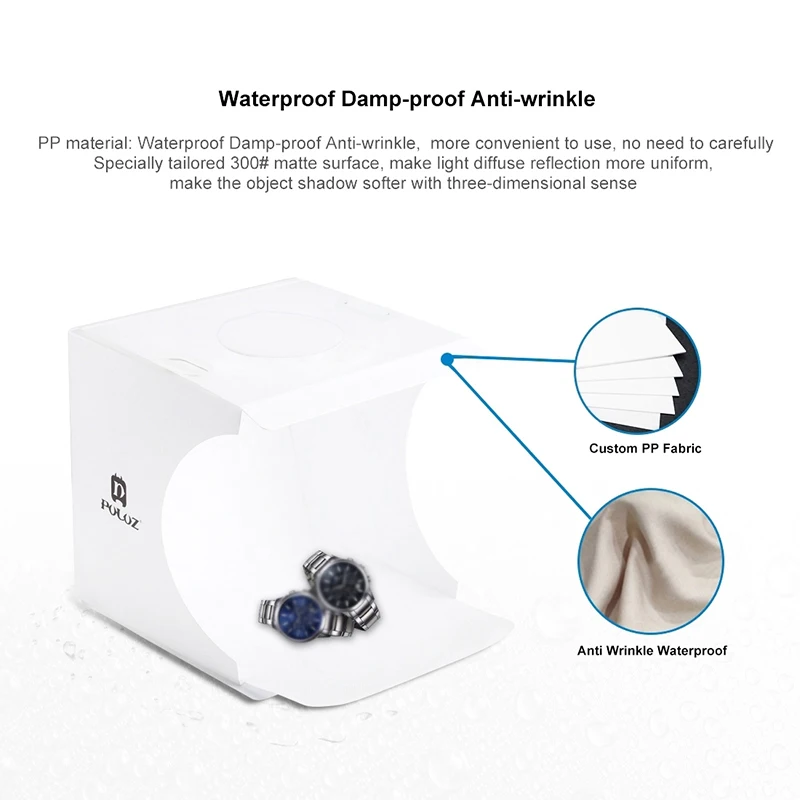 - [Different backgrounds] With 6 backgrounds, and build-in light and USB cable (You should prepare a usb charger to power it.