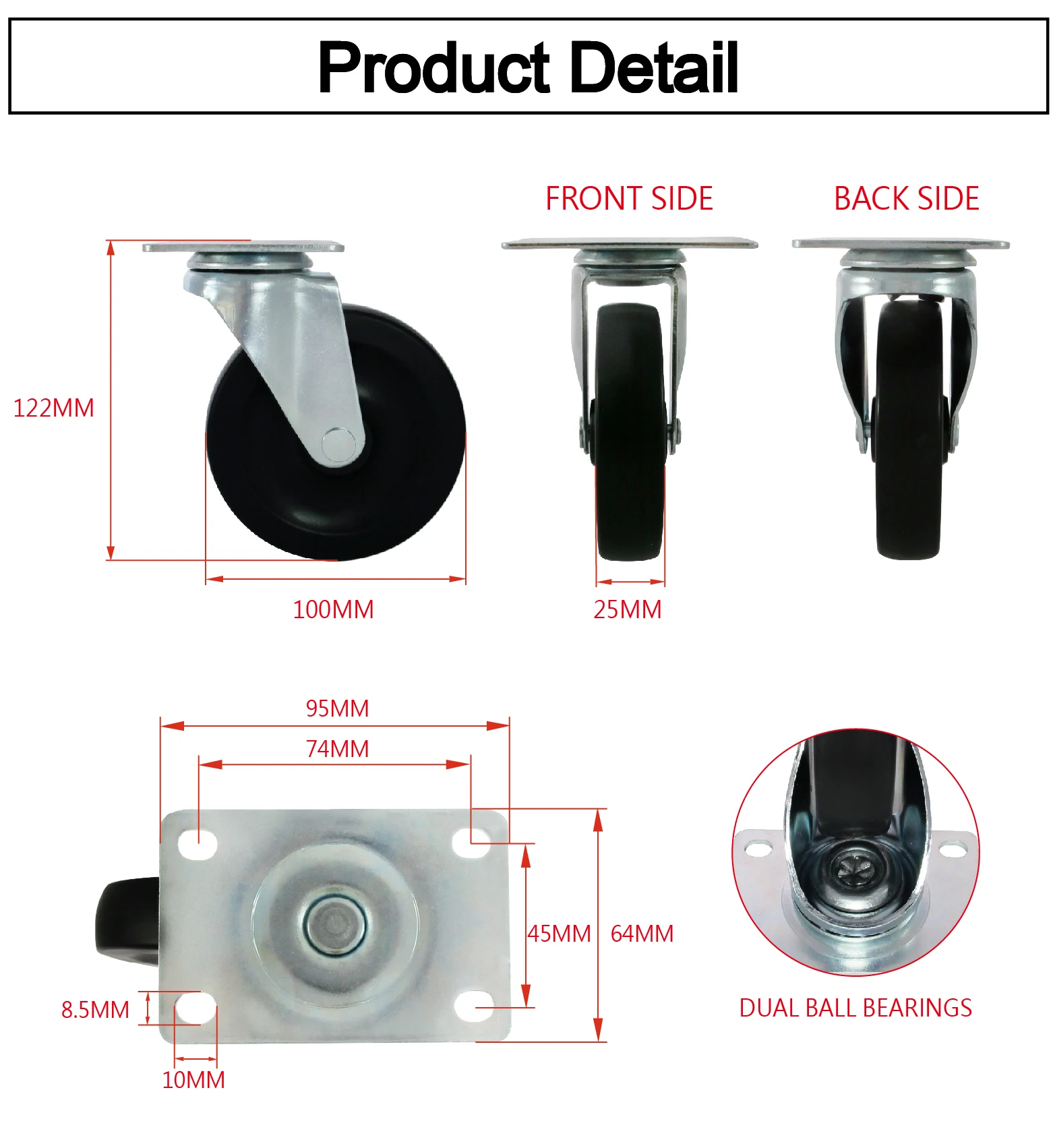 | Type: | Plate Casters; | Plate Size: | 95mm(L) X 64mm(W); |
