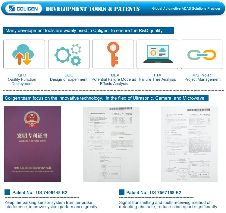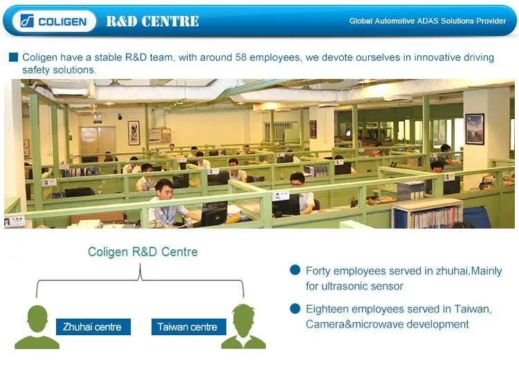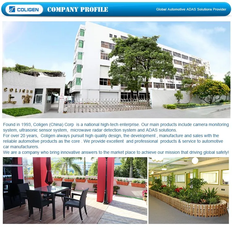Coligen (China) Corporation was founded in 1993,the first ultrasonic parking sensor manufacturer in the world, providing high quality ultrasonic sensor system, microwave radar detection system, reversing aid camera system and ADAS solution to many leading auto car companies, such as Volvo, Volkswagen, Toyota, Nissan, etc.