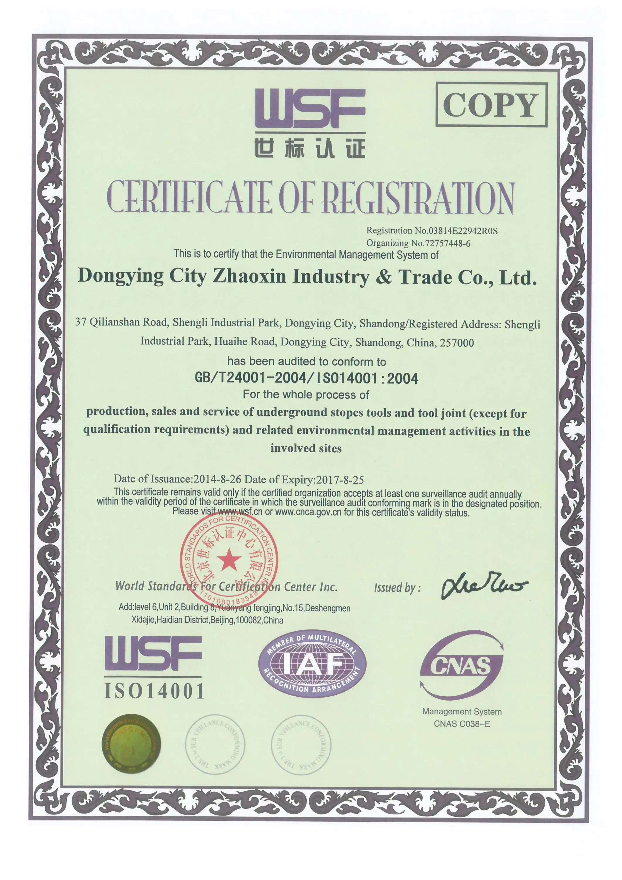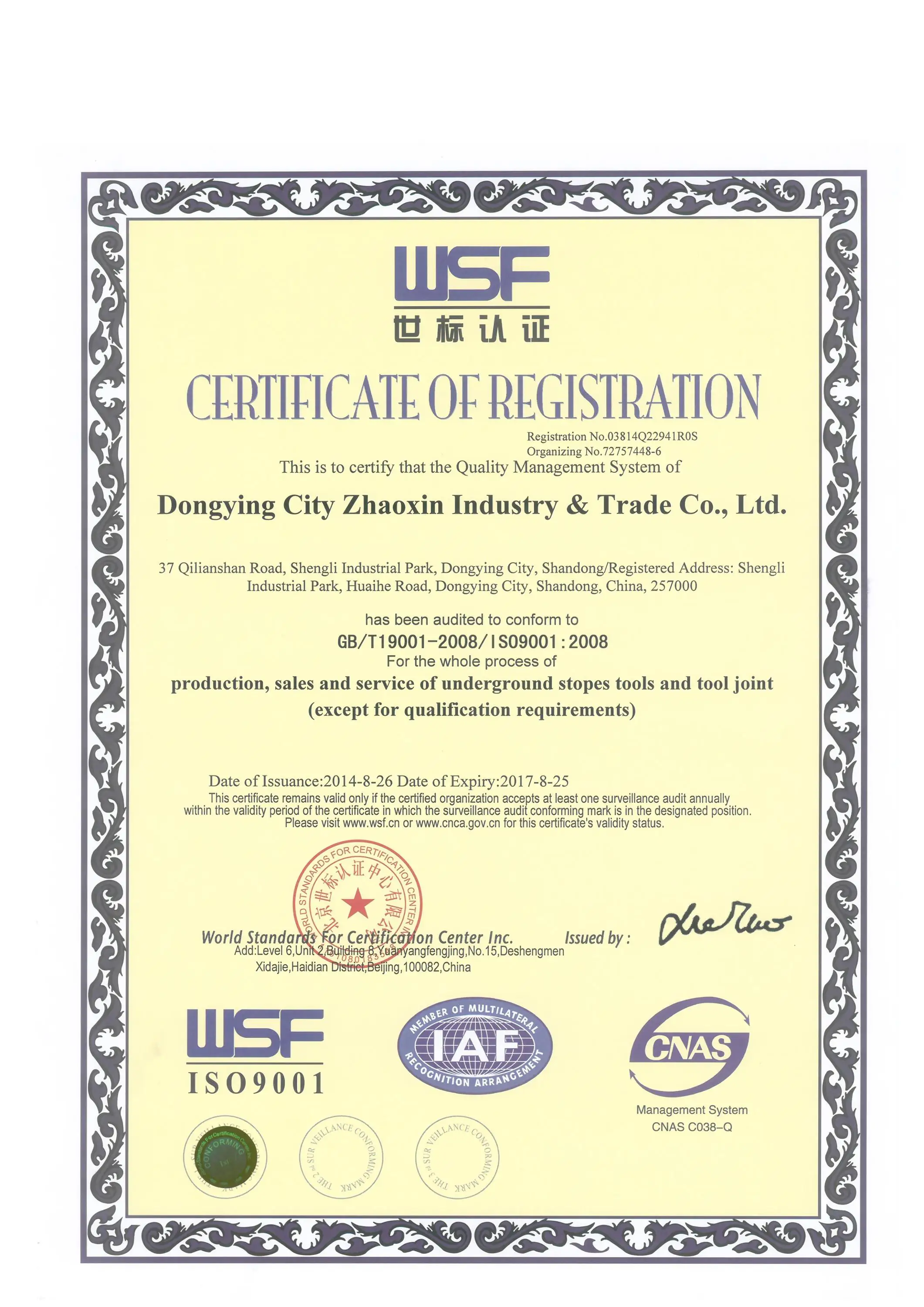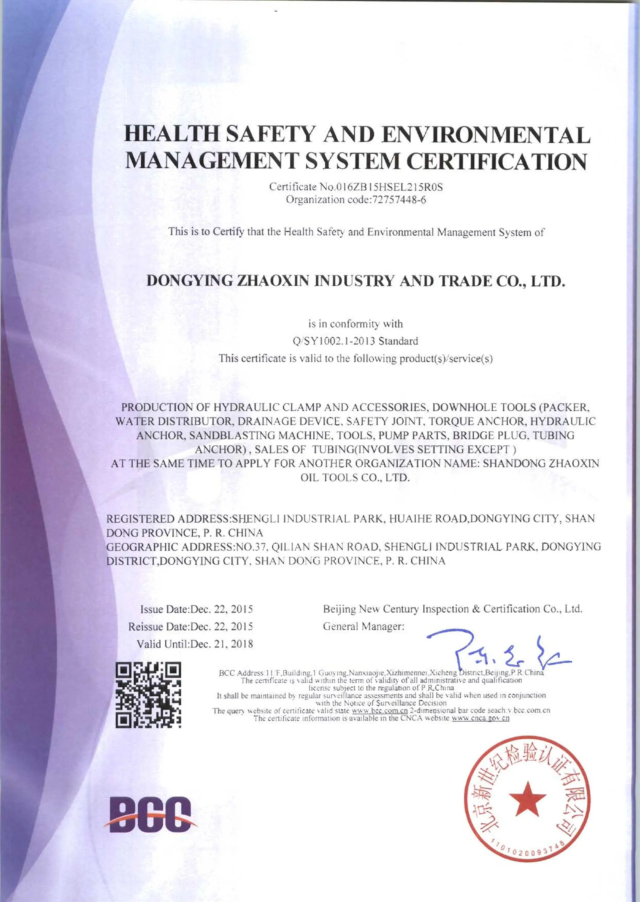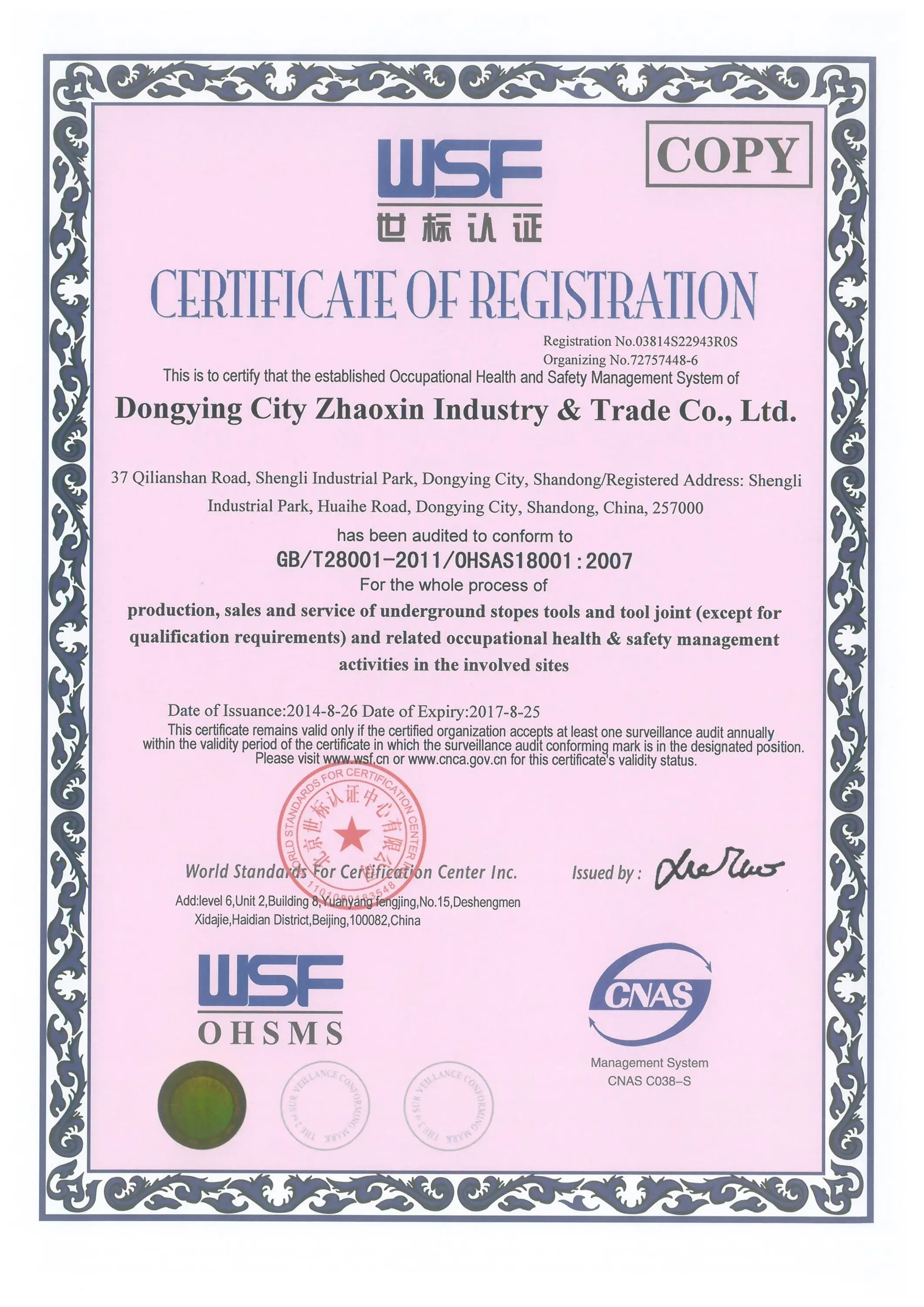 Dongying Zhaoxin Industry and Trade Co.,Ltd is an API ISO-9001, ISO-14001, OHSAS-18001 certified company and has all the quality systems in place for design, planning,manufacturing and quality monitoring & traceability to ensure that Dongying Zhaoxin Industry and Trade Co.,Ltd products match the highest quality & reliability Standards similar to any International major in this field.