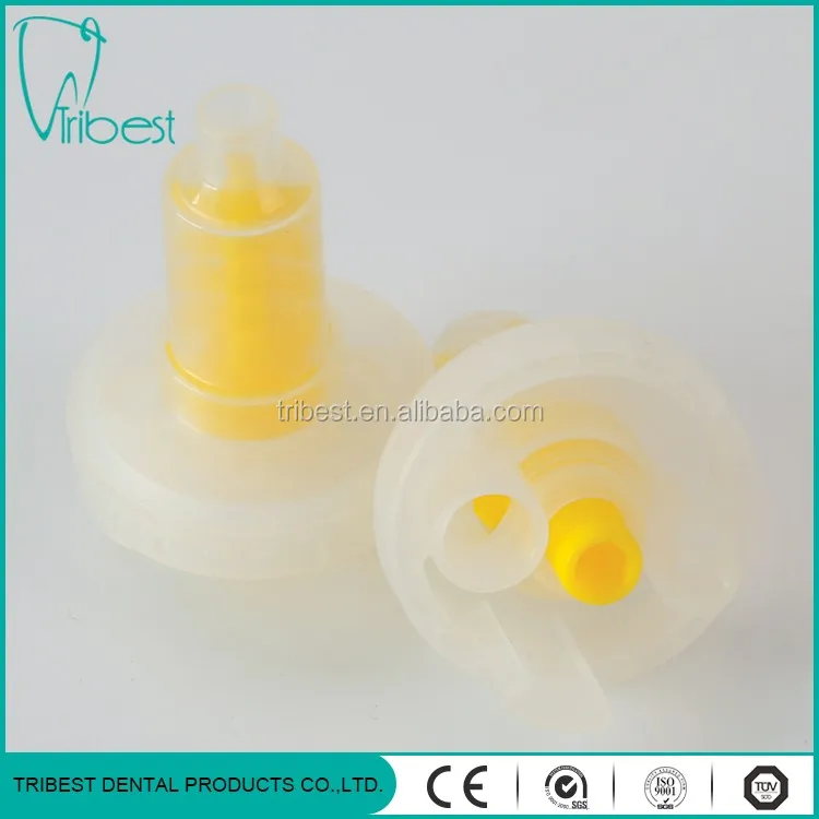 2. In order to mix dental impression materials, open the cap of 50ml dual cartridge filled with impression material, then put on the relevant mixing tip and rotary it.