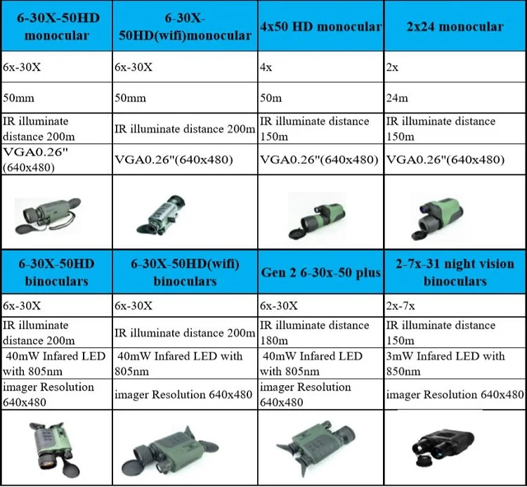 | Model | 6x-30X-50HD monocular | 6x-30X-50HD(wifi)monocular | 6x-30X-50HD binoculars | 6x-30X-50HD(wifi) binoculars |