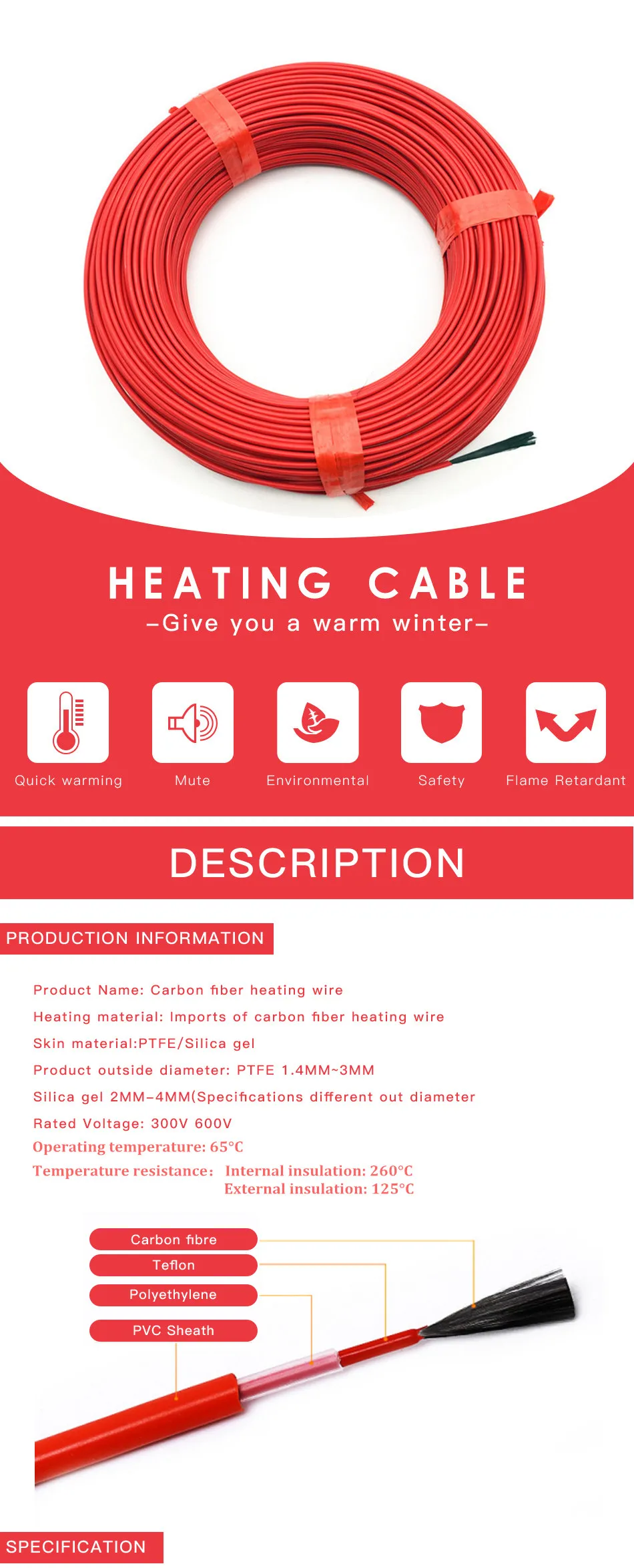 | Model Number: | Carbon fiber heating wire; | Selling Units: | Single item; |