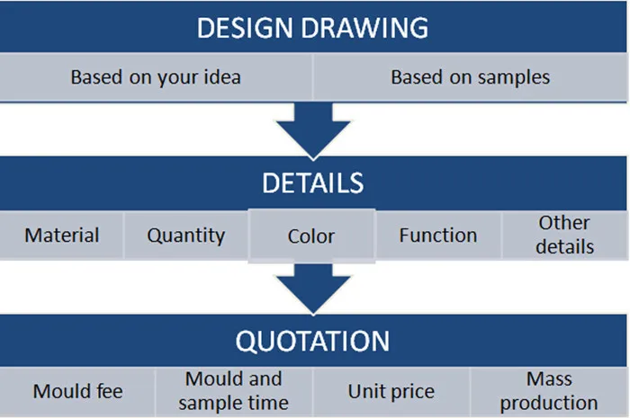 About the quotation,except the drawings both 2D and 3D drawing,the details just like which material you choose,what color you need,how many quantities need and so on are also very very important!