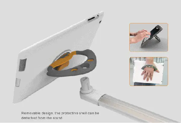 7. The Ipad holder can be taken apart from the stand for individual use as a handle case or desk stand