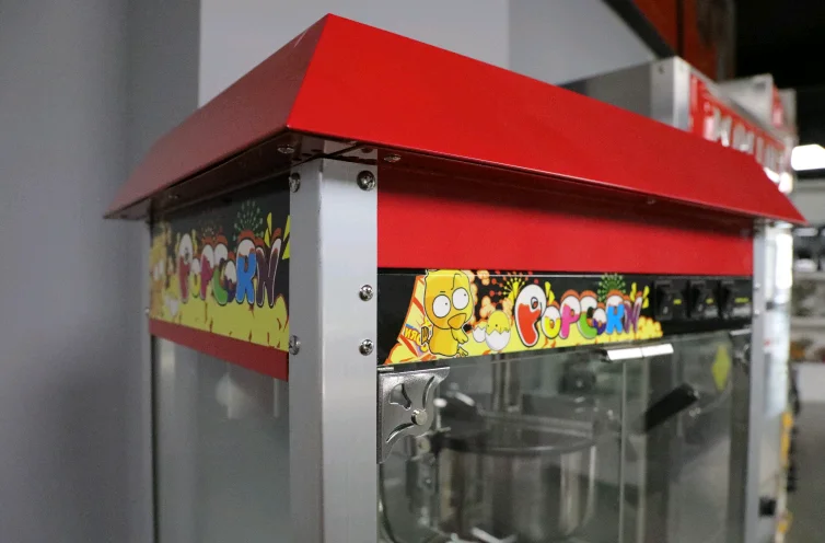 Our popocorn machine have following features: Hygienic, easy to operate, high yield, attractive outlook with many designs. It's widely used in snack bar, walking street, supermarket, petrol station, party, school, buffet, restaurant, etc.
