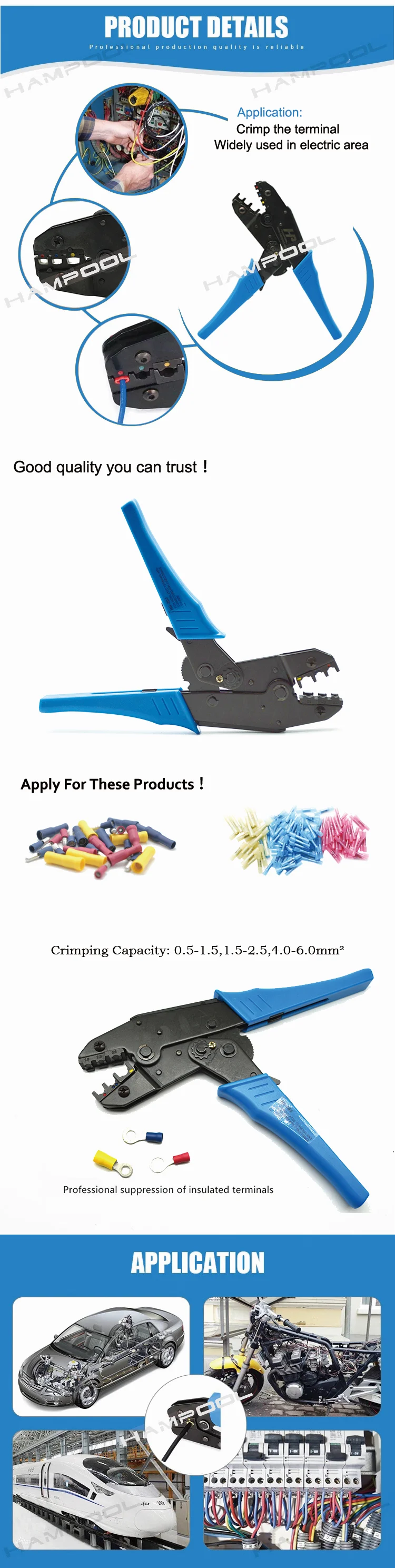 | Crimping Capacity: | 0.5-1.5, 1.5-2.5, 4-6mm2; | Place of Origin: | Shanghai China; |