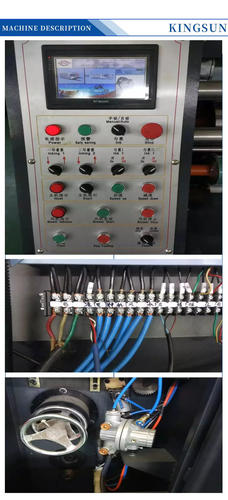 4.Chuan-ink system that uses high-precision network transmission ink roller and rubber roller,and the other an independent motor drive,beyond the clutch to ensure the shutdown stop ink,the ink pneumatic diaphragm pumps,pneumatic lift version.