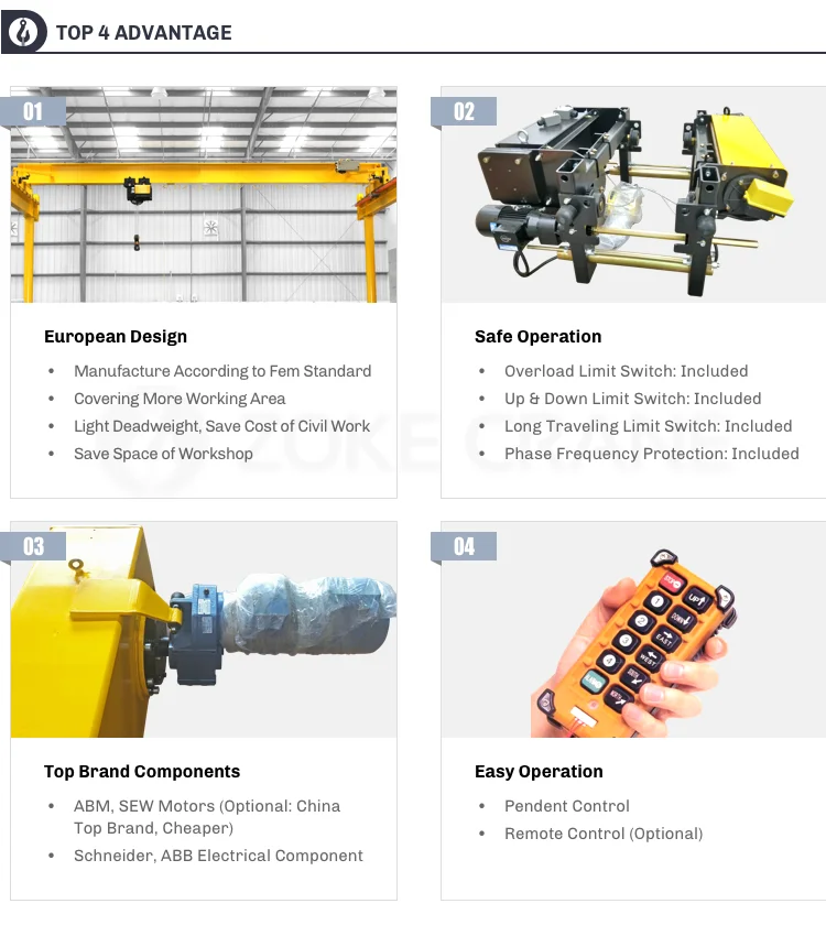 | European type single girder overhead | For the workshop of high-tech products, or if you have requirement of low |