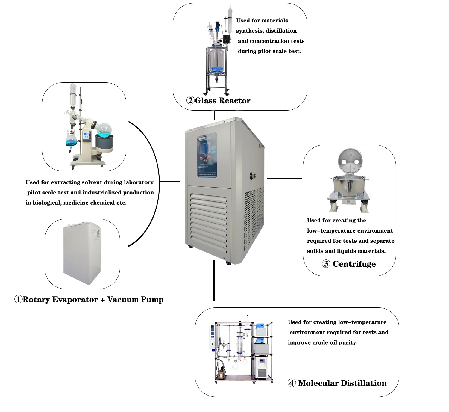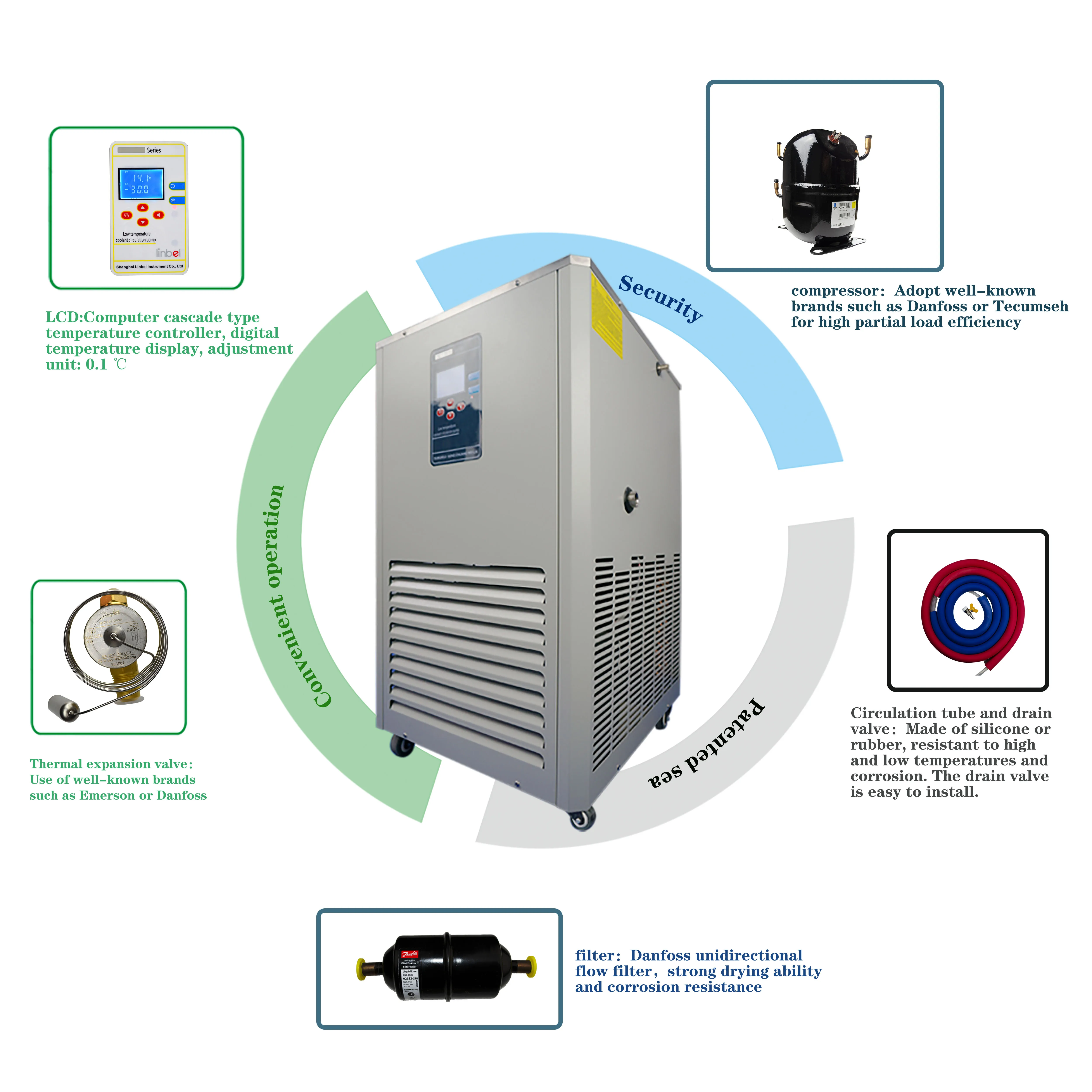 Recirculating Chiller, as a cryogenic liquid circulating device, energized by mechanical cooling, is mainly used for providing cryogenic liquid and low temperature water bath.