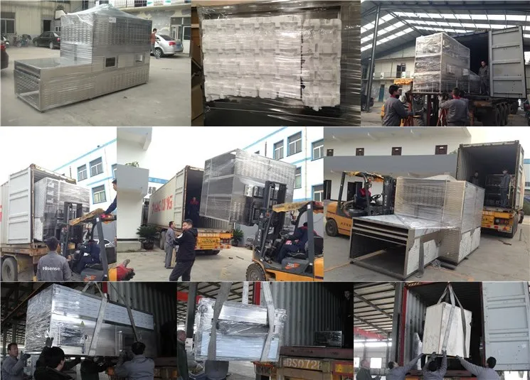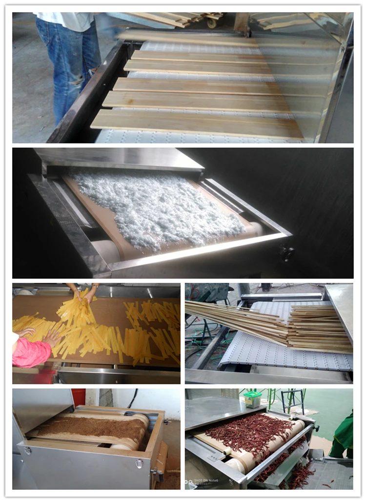 Industrial microwave dryer is used for drying and sterilizing various kinds of food---snack food, agricultural products, fish slice, slice dried meat, bean products, instant noodles, fast food, dried fruit, tea, herbs, karaoke powder, fruit and vegetable in the form of powder, granules, slice, etc.