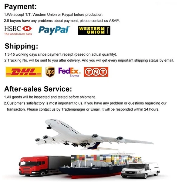 | Package Type: | 1. Standard export package 2. According to customer's request; | Delivery time: | 1-7 days; |