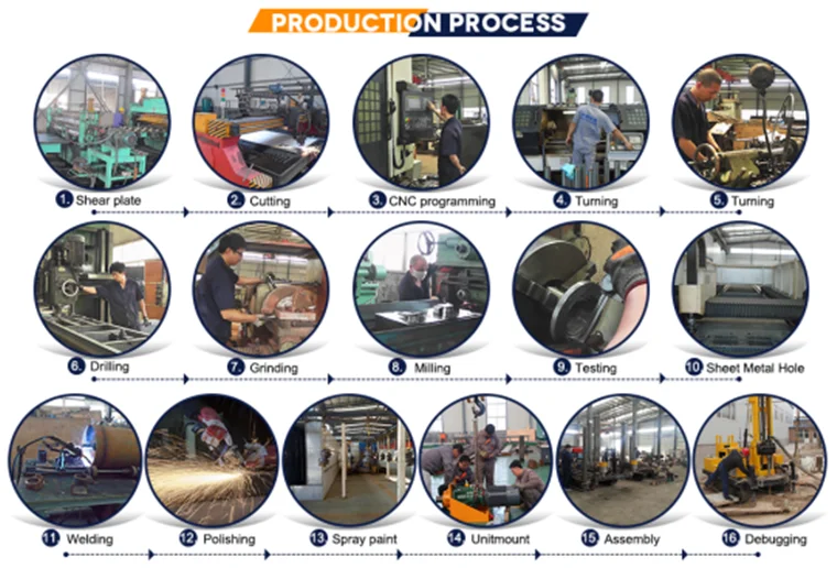 d. drill mast controlled by hydraulic cylinder, improve the efficiency diesel engine adopt the electric starter, to reduce the labor intensity.