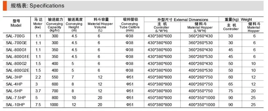 | Model | SAL-800G2 | Material Hopper Volume | 6L |