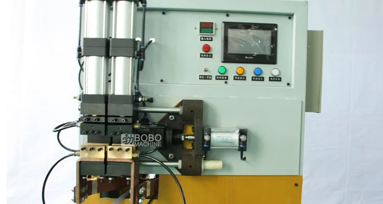 Copper aluminum tube butt welding machine for condenser manufacturing adopts the air-powered vertical pressure or air-powered lever pressure system, work piece clamp steady which make welding tie-in nice, steady, less dregs. It is widely used in condenser making, and we have patent for this machine.