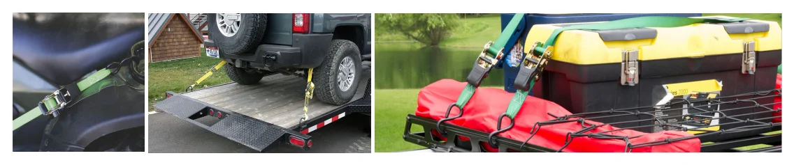 Ergonomic handles, strong polyester webbing and rubber-coated steel S-hooks.