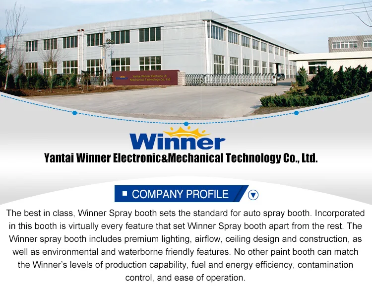 Lighting: Another key element is bright, shadow-free lighting throughout the booth. YANTAI WINNER utilizes color-corrected light fixtures, in the proper quantity and correct location. This creates an environment that allows for proper color match and paint flow identification.