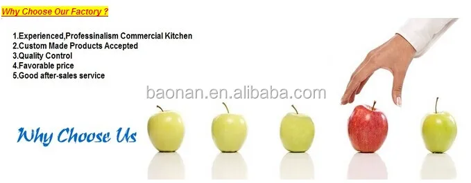 Foshan Nainan Baonan Kitchen Equipment Factory is a professional stainless steel commercial kitchen equipment manufacturer which specializes in the industry for more than 20 years since 1998. It comes with a variety of product and most of them are CE certified, mainly including table, sink, cupboard, rack, shelves, electric and gas equipment widely used in western restaurant, fast food, supermarket, and snack bar.