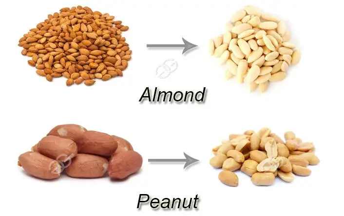 The Peanut, almond need with hot water 95 degrees soak 5-6 minutes, room temperature water soak for about 10 minutes, material surface softening, with the hand test of skin whether can be dropped.