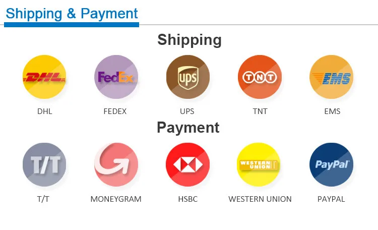 We accept payment of T/T, Western Union, PayPal and cash only, need to receive 30% deposit first and the balance be paid before shipment.