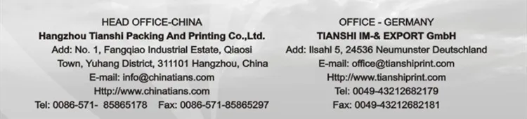TIANSHI is a famous brand for paper boxes in HANGZHOU TIANSHI PACKING&PRINTING CO.,LTD .Established in 1992. Our company is in the production of high-quality paper boxes(gold/silver and golographic paper,and all kind of special papaer),high-quality color PVC,PET,PP plastic boxes,handbags,product brochures,printing albums,color catalogs.