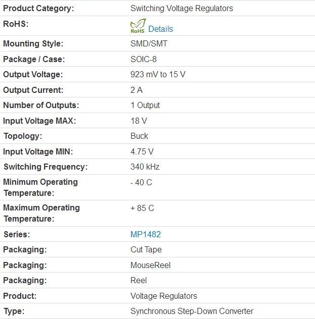 Switching Voltage Regulators 2A, 18V Sync Step-Down DC-DC MP1482DS-LF-Z