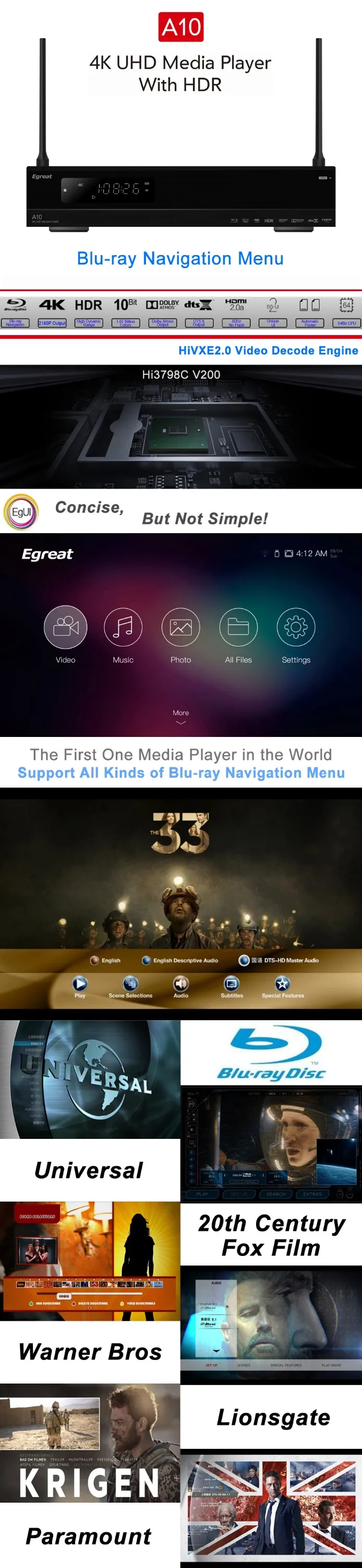 2.The First&Exclusive Android HDD Media Player with Full Function Blu-ray Navigation, Decoding All Contents of The Blu-ray Moves;