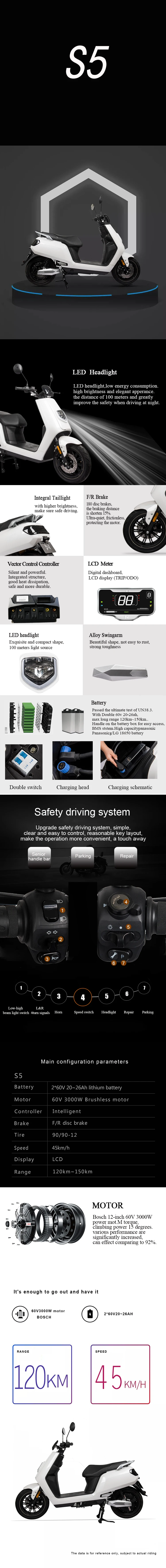 | Engine: | Electric Motor; | Motor Power: | 3000W Brushless Motor; |