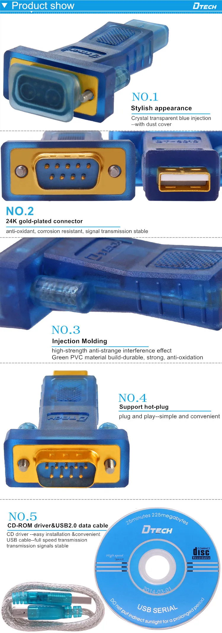 | Model Number: | DT-5010; | Connector: | Gold-plated pin DB9 connector, USB gilded head; |