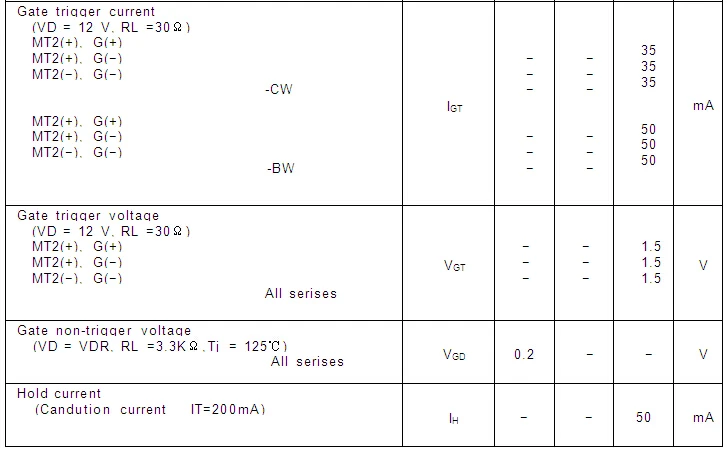 | SAFETY: | CE; | Packaging Detail: | The packing of the Triacs : 1. Anti-electrostatic packaging 2. Carton box; |