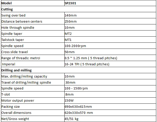 | Max. Swing Diameter (mm): | 140 mm; | Motor output power: | 150W; |