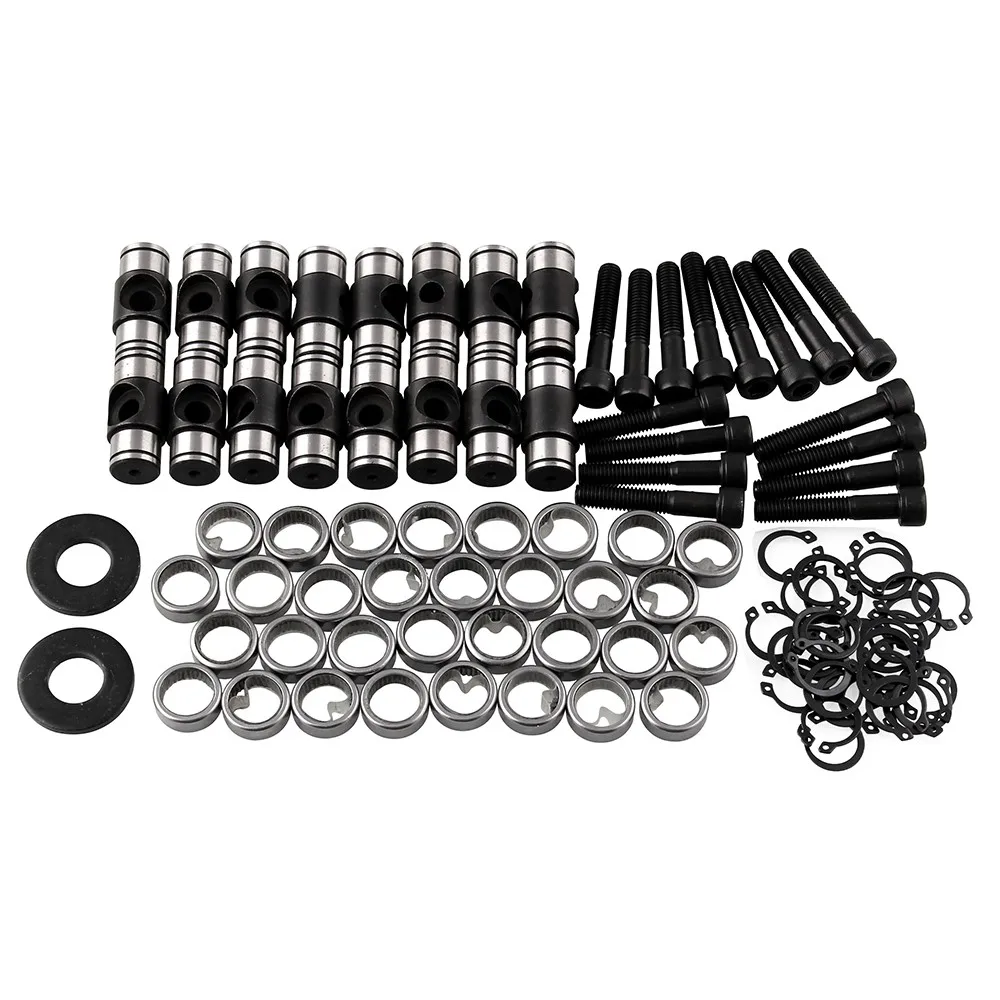 They include the rocker arm trunions, rocker arm bearings, and rocker arm retaining rings for a complete installation.